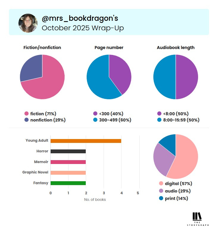 I hope November is a better reading month. As I write this, it is the middle of November and although I am struggling with finding a book to hold my attention, I am making a more conscious effort in improving my reading life.
