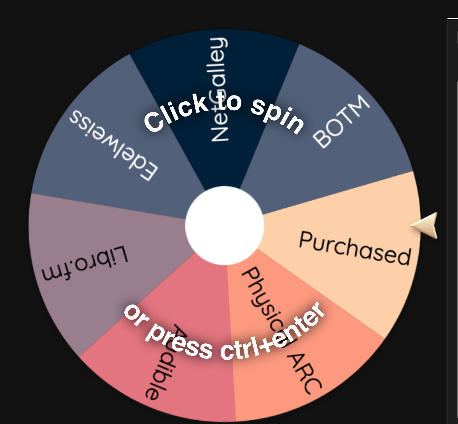 Step 1: Spin Wheel to determine category of my read.